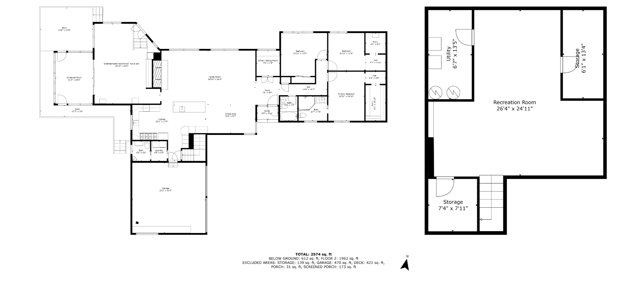 ✔️ Spacious Entertainment Room with Custom Stone Walls, Vaulted Wood Ceiling, Wet Bar, Hot Tub, and Sliders